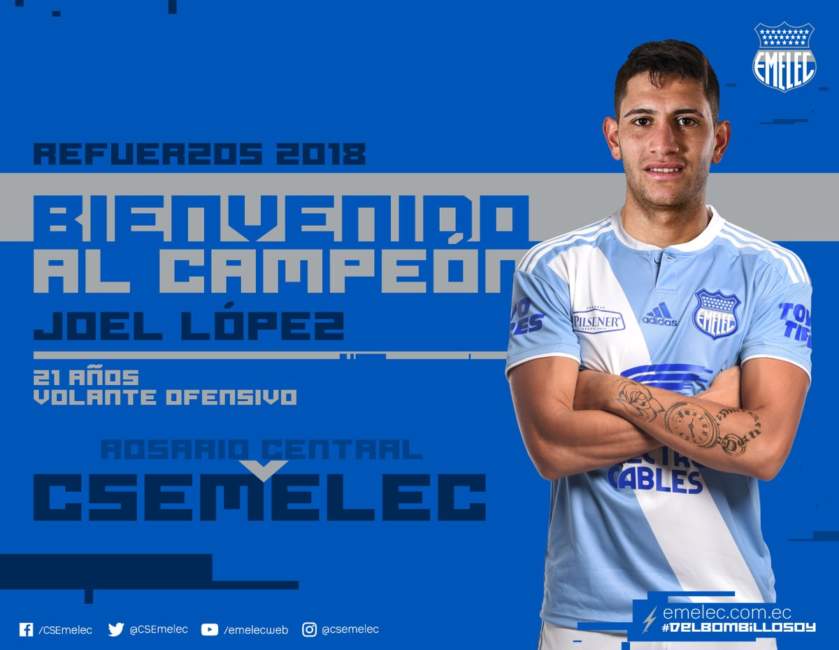 El Club Sport Emelec anunció de manera oficial la contratación del volante argentino, Joel López Pissano, del Rosario Central.