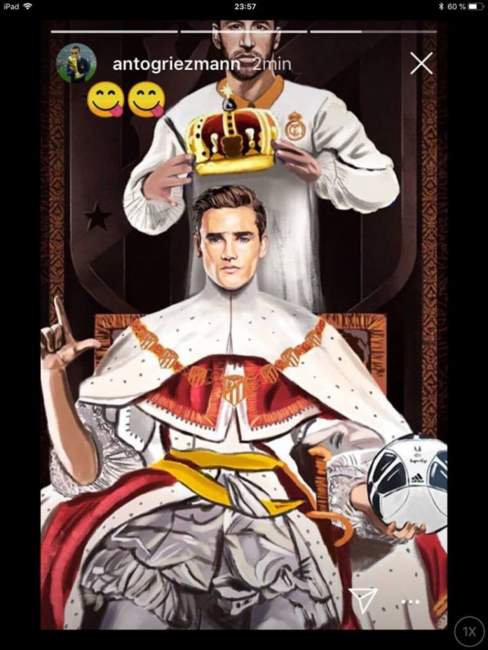 Resulta que Griezmann subió una foto en la que Ramos le pone una corona. Es más, hasta en la imagen se muestra un trono en el que el atacante de la Selección de Francia se encuentra sentado. Con solo horas de publicada, la imagen fue compartida miles de veces en Instagram. También fue replicada a través de Facebook y Twitter.