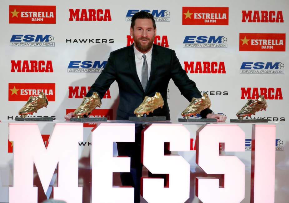 Lionel Messi recibió este martes en L’ Antiga Fàbrica de Estrella Damm de Barcelona la quinta de Bota de Oro de su carrera y se ha convertido en el único jugador en alzar este premio tal cantidad de veces.