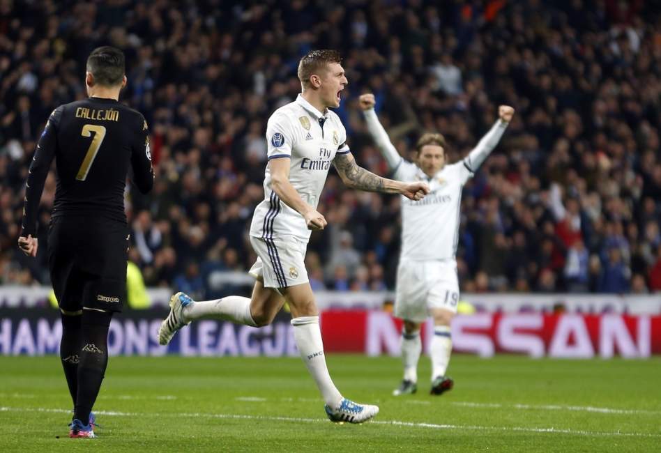 Pero Karim Benzema igualó a los 17 mediante un cabezazo tras un largo centro de Dani Carvajal. Toni Kroos dio la ventaja al conjunto local a los 48 tras un pase letal que le envió Cristiano Ronaldo en diagonal retrasada.