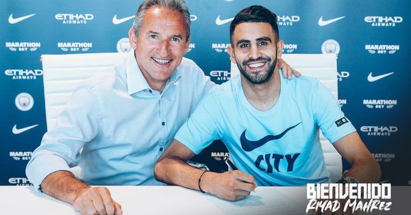 Manchester City anunció hoy su primer fichaje de este período de traspasos, el argelino Riyad Mahrez, que llega del Leicester. En la última temporada, el mediocampista anotó 12 goles en los 36 partidos que disputó.