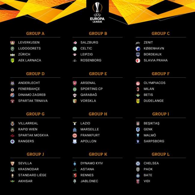 Krasnodar mientras tanto aparece en el Grupo J con el Sevilla de España, el Standard Liega de Bélgica y el Akhisar de Turquía.