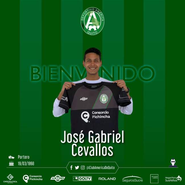 «¡JUVENTUD PARA EL ARCO! José Gabriel Cevallos se une al CD América proveniente de Barcelona SC a préstamo por un año», escribió el cuadro cevollita.