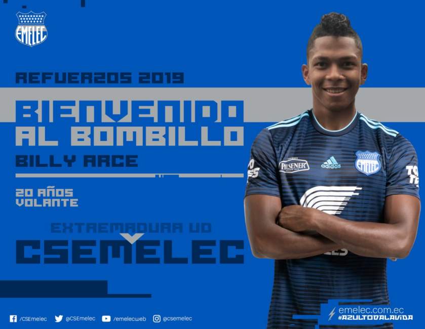 Emelec sigue reforzando su plantilla de cara a lo que será el inicio del Campeonato Ecuatoriano 2019, esta vez el cuadro azul hizo oficial la llegada del ecuatoriano Billy Arce.